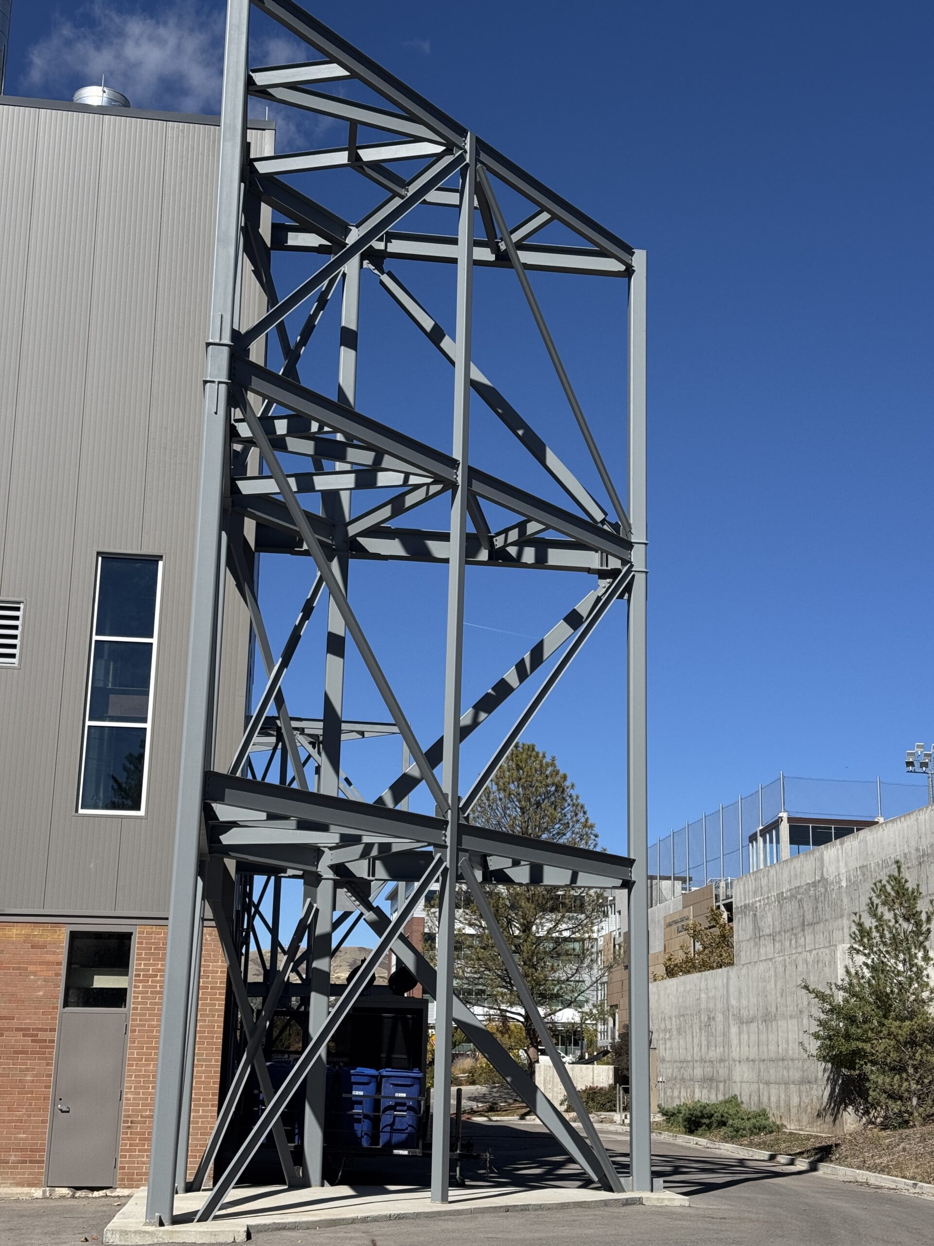 Seismic retrofit of the University of Utah’s High Temperature Water Plant (Blgd 303). The masonry structure was given an upgrade to help ensure its operation after a seismic event. Due to limited interior space, external buttresses were used to strengthen the building.